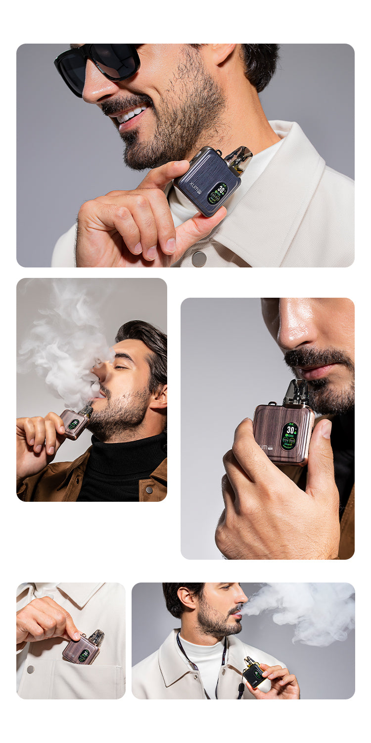 تتميز بشاشة TFT (ترانزستور أغشية رقيقة) ملونة مقاس 0.96 بوصة وموضوعات ديناميكية اختيارية لتجربة vaping بصرية ثرية.