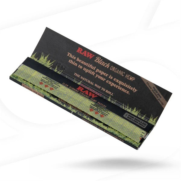 ورق لفّ سجائر RAW أسود رفيع من القنب العضوي، مقاس كبير