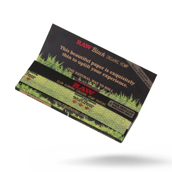 ورق لف RAW Black 1 1/4 عضوي من القنب